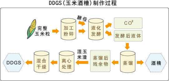 近来美国研发『玉米酒精』来取代石油,当酒精工厂在制造玉米酒精时,只会使用玉米中所含的淀粉,而留下含有蛋白质、纤维、油脂等营养成分之副产物,这些副产物就称为Distiller’s Dried Grain with Soluble,简称为DDGS(中华食物网命名为中华爆米香)。